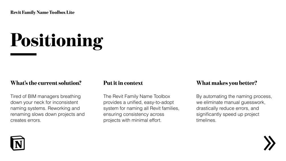 • The Revit Family Name Toolbox provides a unified, easy-to-adopt system for naming all Revit families, ensuring consistency across projects with minimal effort.