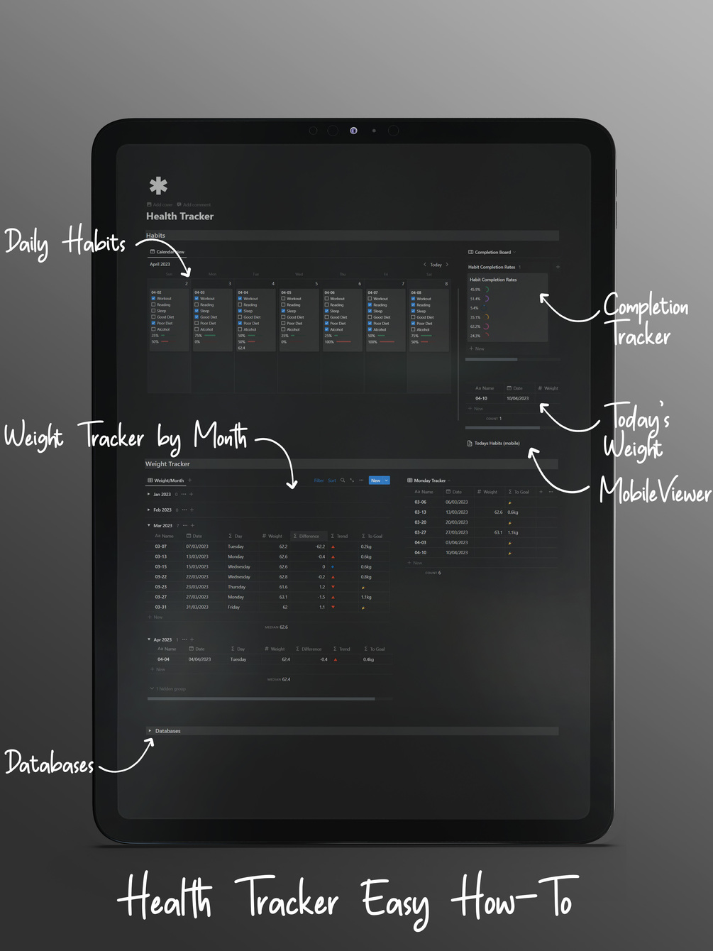 Want to improve your health habits and reach your weight goal? Check out Health Tracker, a cool Notion template that lets you:
